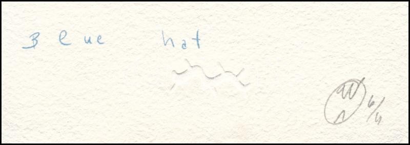 Description: Wahorn András (1953-): Blue hat. Computer print, merített papír, jelzett, számozott (6/9), lapméret: 29×21 cm / András Wahorn (1953-): Blue hat. Computer print on paper, signed, numbered (6/9), sheet size: 29×21 cm