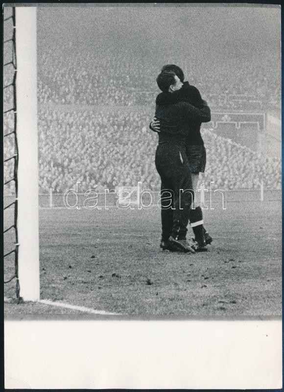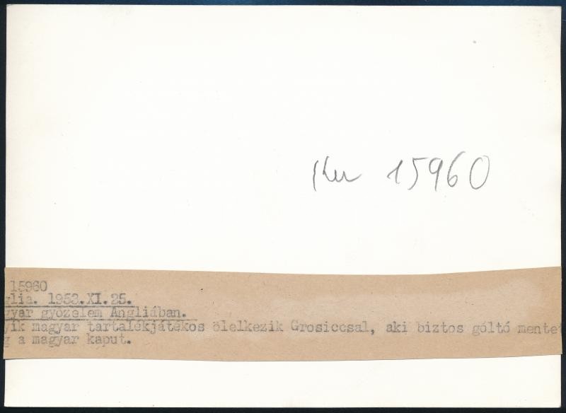 1953 Magyarország-Anglia a legendás 6:3 football meccs feliratozott sajtófotója, 13×17,5 cm