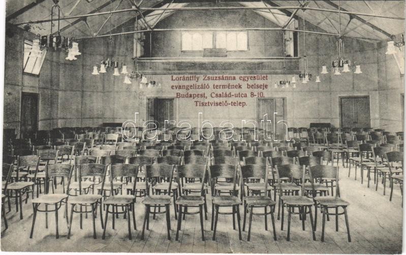 1914 Budapest VIII. Tisztviselőtelep, Lórántffy Zsuzsanna egyesület evangelizáló termének belseje. Család utca 8-10.