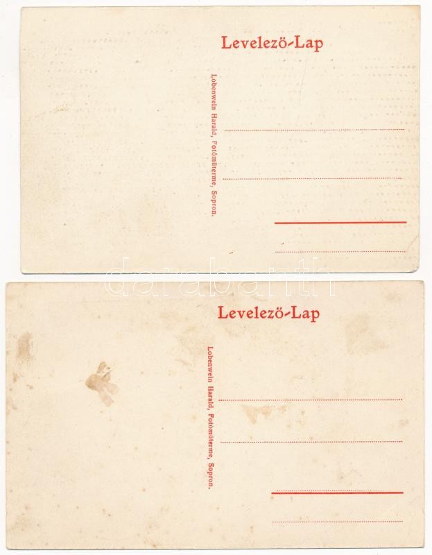 Description: Sopron, Rösch Frigyes Tűzoltó laktanya őrsége, tűzoltó és mentőkocsik, beteghordóágy. Lobenwein Harald kiadása - 2 db régi képeslap / 2 pre-1945 postcards
