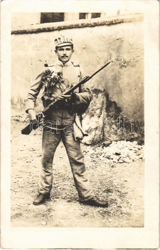 Őszirózsás forradalom, katona fegyverrel, rózsával és sapkajelvényekke... https://www.darabanth.com/en/35-Major-auction/35.1/Postcards/Militaria~14716/Oszirozsas-forradalom-katona-fegyverrel-rozsaval-es-sapkajelvenyekkel-Soldier-with-gun-we~II2372923