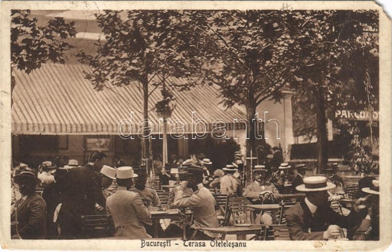 Bucuresti, Bucharest, Bukarest; Terasa Otetelesanu / restaurant terrace + "K.U.K. F.J.B. NR. 19" (EM)