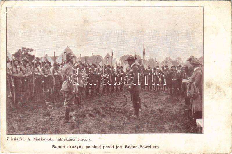 Raport druzyny polskiej przed jen. Baden-Powellem. Z ksiazki A. Malkow... https://www.darabanth.com/en/35-Major-auction/35.1/Postcards/Scout~14686/Raport-druzyny-polskiej-przed-jen-Baden-Powellem-Z-ksiazki-A-Malkowski-Jak-skauci-pracuja-Leng~II2373151