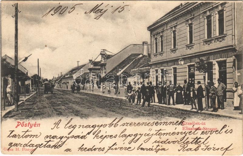 1905 Pöstyén, Piestany; Erzsébet út, vendéglő / street, restaurant (E...