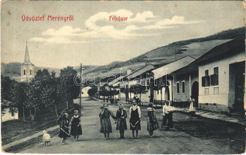 1910 Merény, Vondrisel, Nálepkovo; Felsősor, templom. W.L. Bp. 2731-28. / street, church