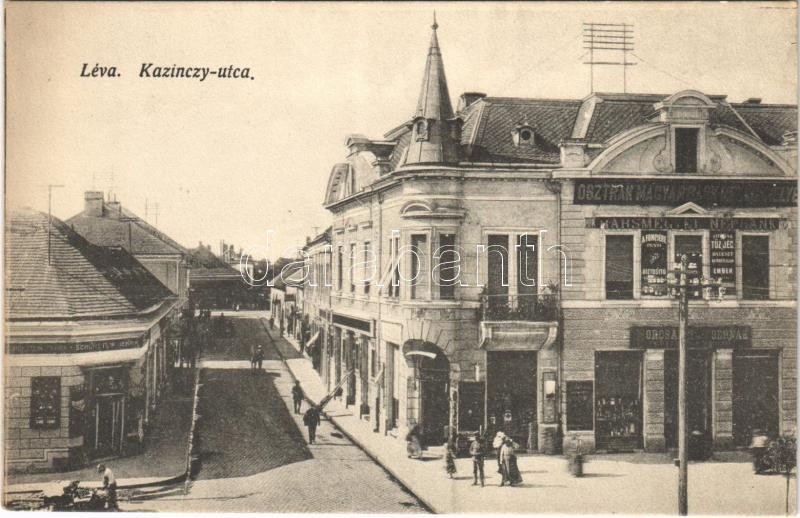 Léva, Levice; Kazinczy utca, Osztrák-magyar Barsmegyei Népbank, Schöns...