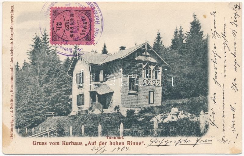 1904 Szebenjuharos, Hohe Rinne, Paltinis; gyógyház. Ritka erdélyi hote... https://www.darabanth.com/en/35-Major-auction/35.1/Postcards/Transylvania~14667/1904-Szebenjuharos-Hohe-Rinne-Paltinis-gyogyhaz-Ritka-erdelyi-hotelposta-Tannhof-Kurhaus-~II2362699