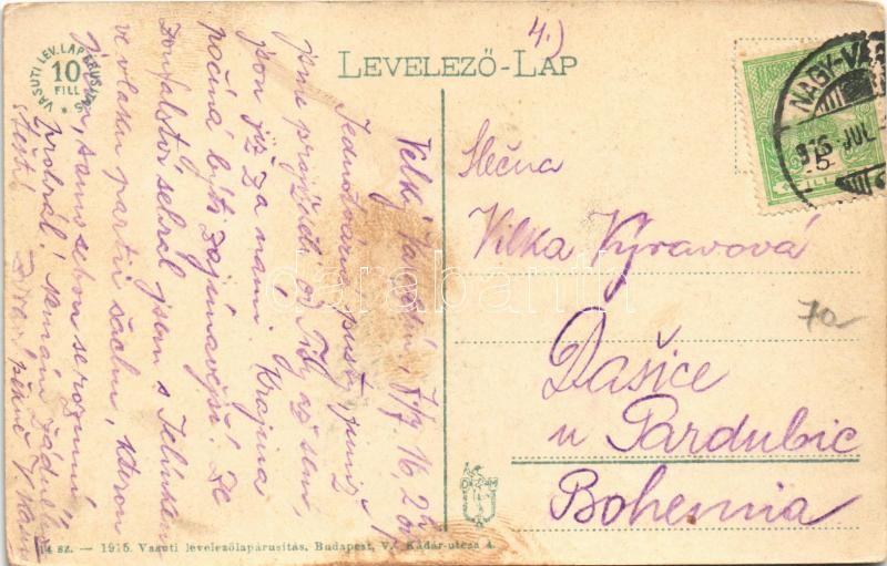 Description: 1916 Nagyvárad, Oradea; Görög katolikus püspöki palota, piac, takarékpénztár. Vasúti levelezőlapárusítás 14. 1915. / bishop's palace, market, savings bank (fl)