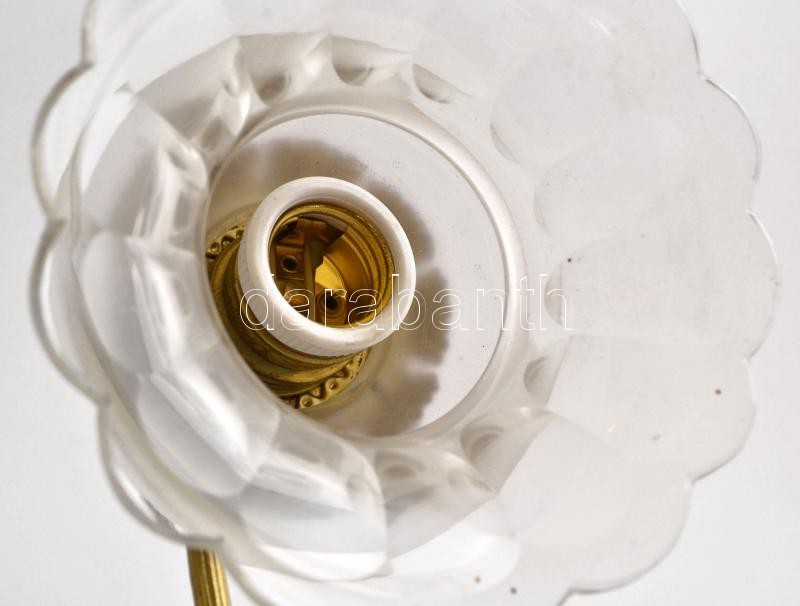 Aranyozott réz falikar párban, maratott csiszolt kristály burákkal, apró karcolásokkal, 26×22 cm (2×)