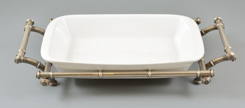 Ezüstözött fém ételkínáló pótolt porcelán tállal, 46×25 cm