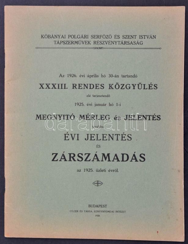 1926 A Köbányai Serfőző és Szent István Tápszerművek rt. Évi jelentése és zárszámadása. 32p.