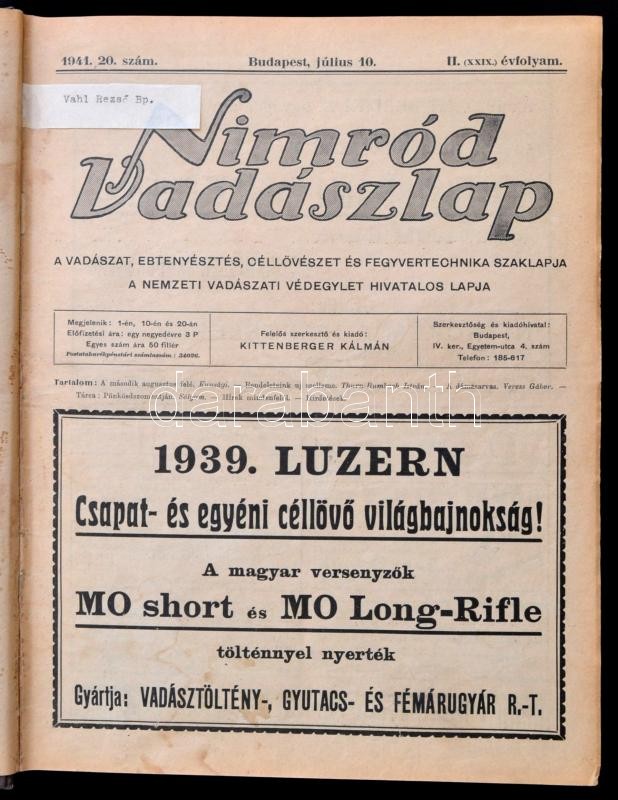 1941-1944 Nimród vadászlap több száma, egybekötve: 1941 II. (XXIX.) é...