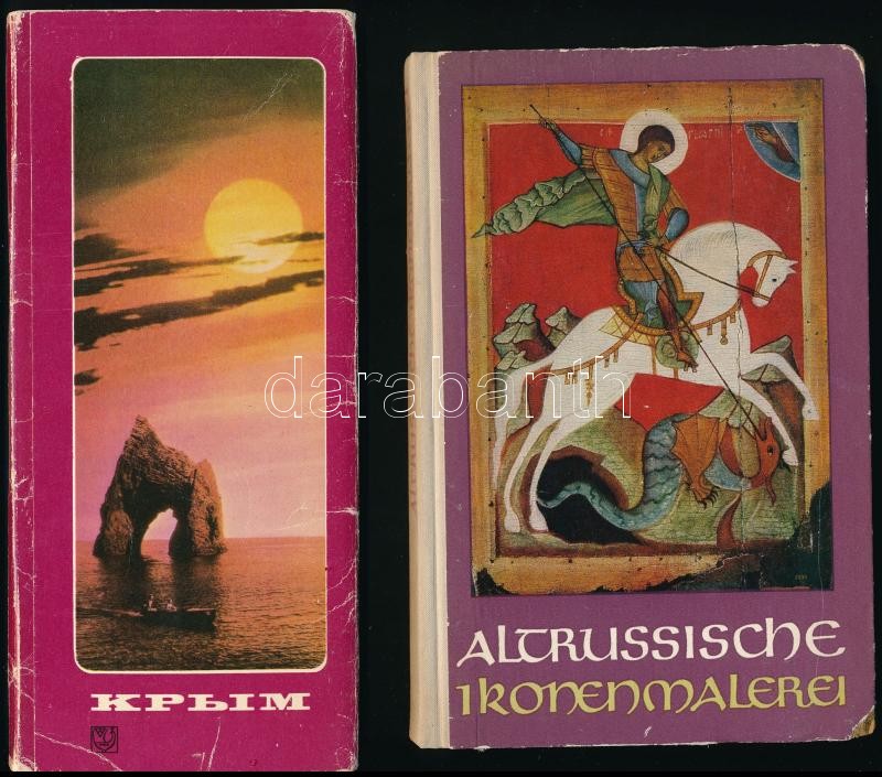 Description: Alpatow, Michael: Altrussische Ikonenmalerei. Dresden, VEB VErlag der Kunst. Félvászon kötés, kissé kopottas állapotban / half linen binding, little damaged condition + Krím-félsziget képeslapokon