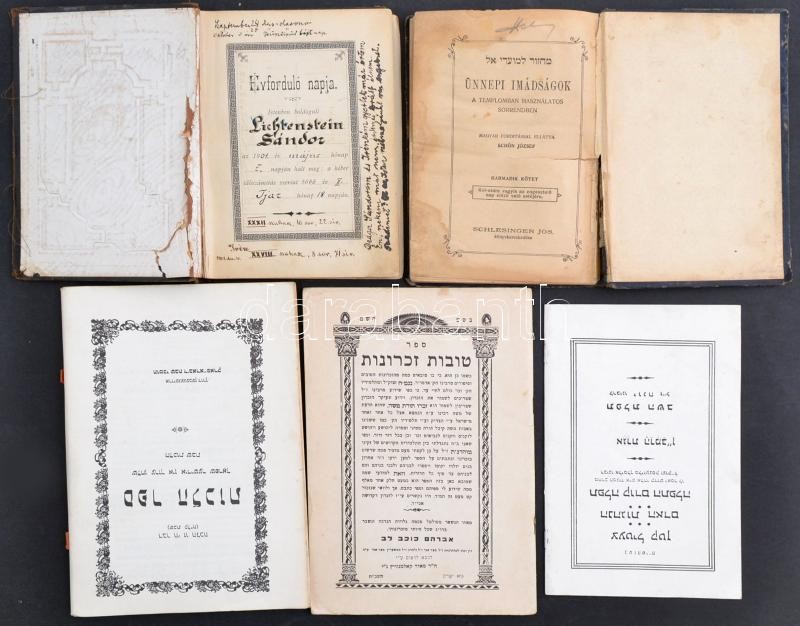 5 db héber nyelvű könyv - Ünnepi imádságok a templomban használatos sorrendben; Hazkára Emlékezések könyve; stb.