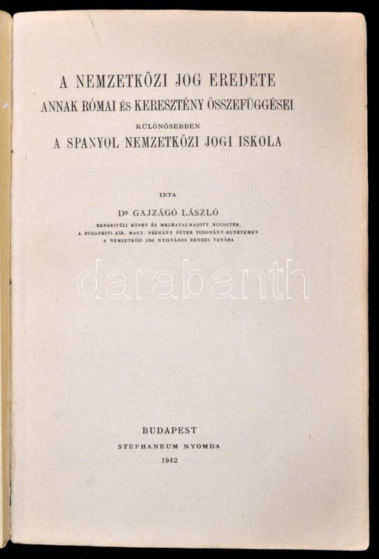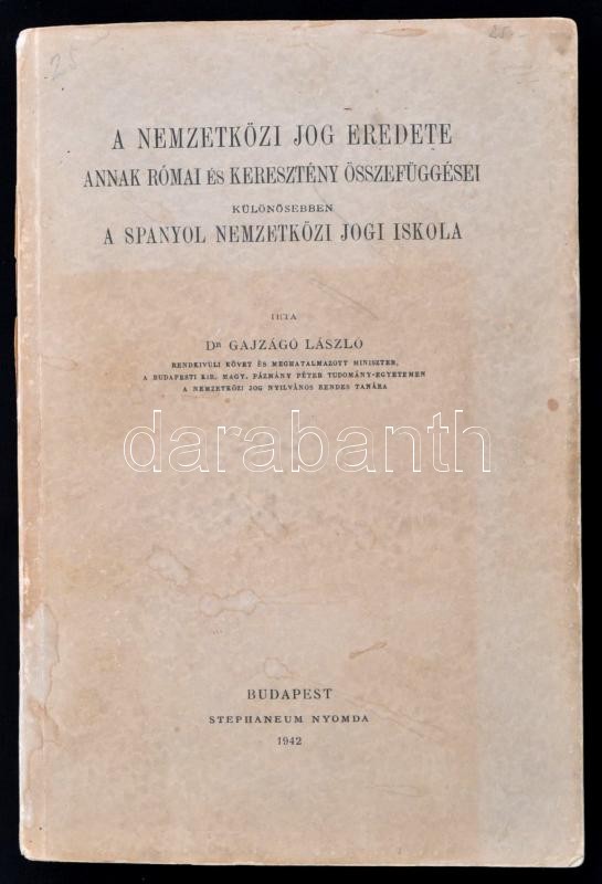 Dr. Gajzágó László: A nemzetközi jog eredete, annak római és keresztén... https://www.darabanth.com/en/350-Online-auction/350.0/Books/Books-Law~34/Dr-Gajzago-Laszlo-A-nemzetkozi-jog-eredete-annak-romai-es-kereszteny-osszefuggesei-KC3~II1909794
