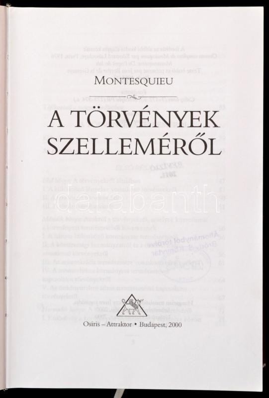 Montesquieu: A törvények szelleméről. Sapientia humana. Bp.,2000, Osir... https://www.darabanth.com/en/350-Online-auction/350.0/Books/Books-Law~34/Montesquieu-A-torvenyek-szellemerol-Sapientia-humana-Bp-2000-Osiris-1049plus1-p-Kiadoi-kart~II1968685