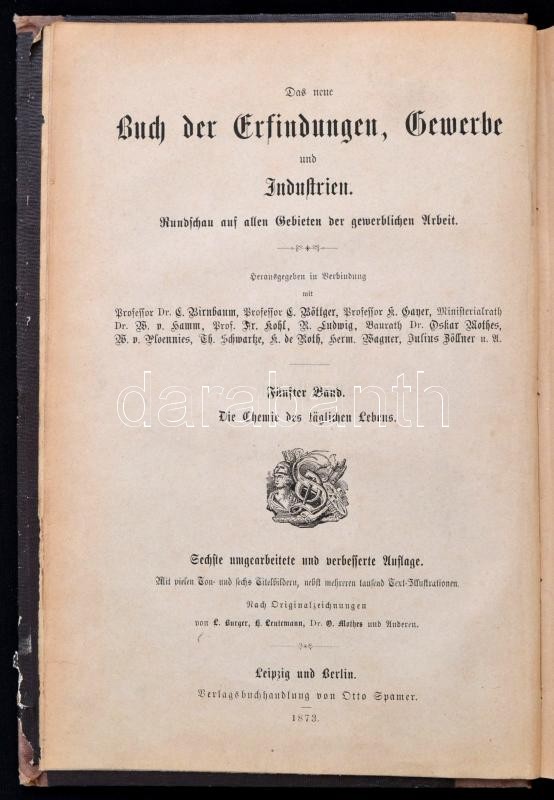 Die Chemie des täglichen Lebens. Das neue Buch der Erfindungen, Gewerbe und Industrien. V. Leipzig-Berlin, 1873, VIII+448 p. Fametszetes illusztrációkkal. Német nyelven. Korabeli kopottas félvászon-kötésben.