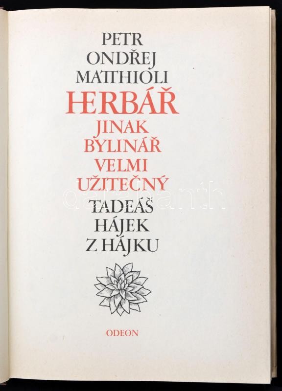Petr Ondřej Matthioli: Herbář jinak bylinář velmi užitečny. Tadeáš Hájek z Hájku. Prága, 1982, Odeon. Cseh nyelven. Kiadói egészvászon-kötés, kiadói papír védőborítóban.
