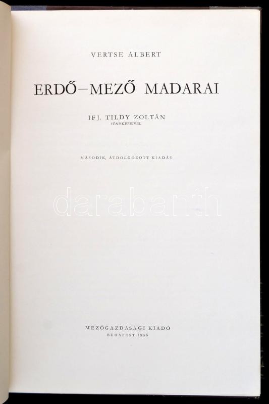 Vertse Albert: Erdő-Mező madarai. Ifj. Tildy Zoltán fényképeivel. Bp., 1956, Mezőgazdasági Kiadó. Kiadói félvászon kötés, kissé kopottas állapotban.