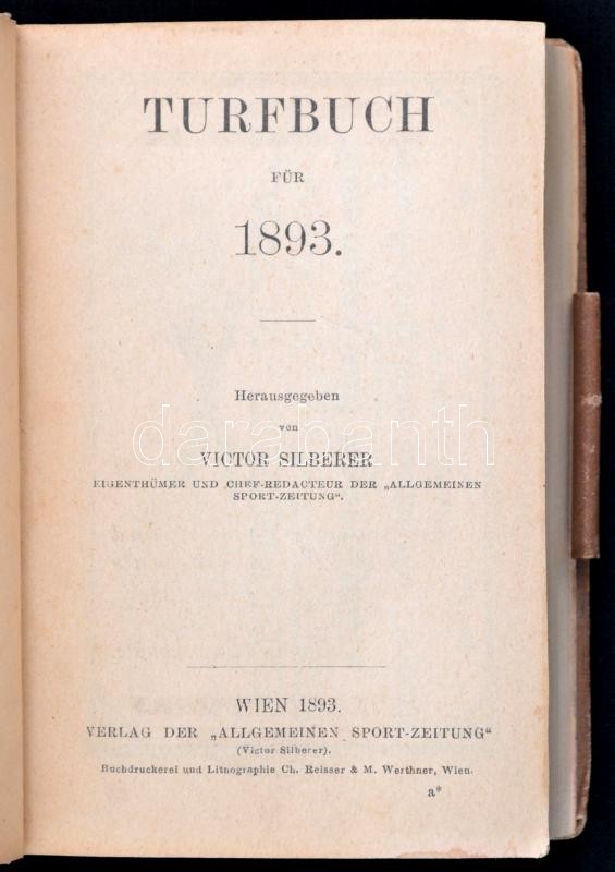 Turfbuch für 1893. Herausgegeben Victor Silberer. Wien, 1893, "Al... https://www.darabanth.com/en/350-Online-auction/350.0/Books/Books-Other-rarities~50/Turfbuch-fur-1893-Herausgegeben-Victor-Silberer-Wien-1893-Allgemeinen-Sport-Zeitung-XXIVplus627~II1990112