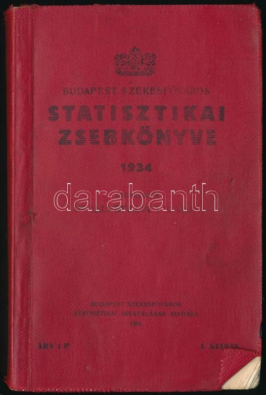 Budapest székesfőváros statisztikai zsebkönyve 1934. Szerk.: Illyefalvi I. Lajos. Bp., 1934. Budapest székesfőváros Statisztikai Hivatala. Kiadói vászonkötésben.