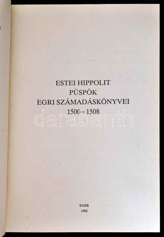 Estei Hippolit püspök egri számadáskönyvei. 1500-1508. Heves Megyei Levéltár Forráskiadványai. Szerk.: Kovács Béla. Közzéteszi: E. Kovács Péter. Eger, 1992, Heves Megyei Levéltár. Kiadói papírkötés.