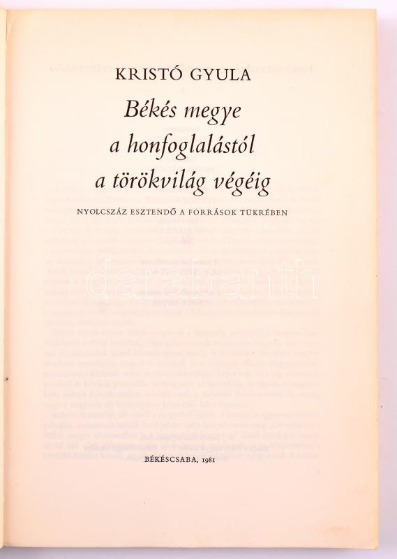 Kristó Gyula: Békés megye a honfoglalástól a törökvilág végéig. nyolcs... https://www.darabanth.com/en/350-Online-auction/350.0/Books/Books-Travelling-Local-History~32/Kristo-Gyula-Bekes-megye-a-honfoglalastol-a-torokvilag-vegeig-nyolcszaz-esztendo-a-for~II1919771
