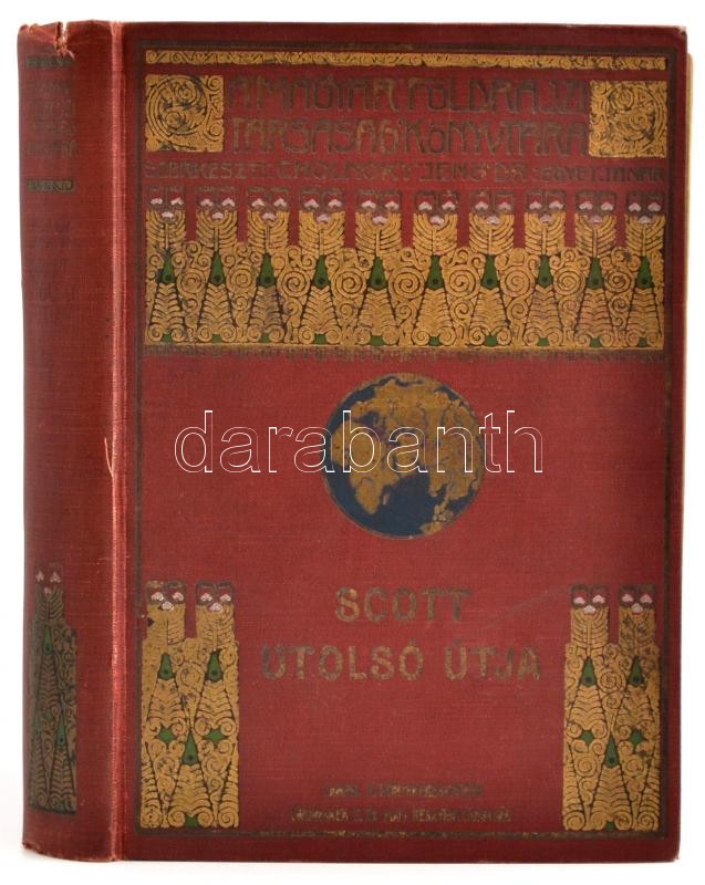 Description: Scott utolsó útja. Scott naplója és útitársainak feljegyzései. Fordította Halász Gyula. Negyven képpel és egy térképpel. Magyar Földrajzi Társaság Könyvtára. Bp.,1923, Lampel R. (Wodianer F. és Fiai),404 p. Kiadói dúsan aranyozott egészvászon sorozatkötésben, kopott borítóval, a gerincen kis sérüléssel.