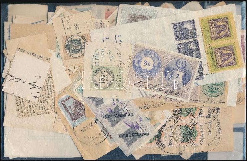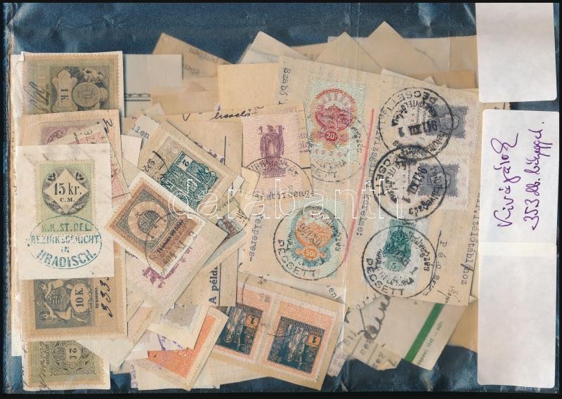 353 db okmánybélyeg kivágásokon, ömlesztve