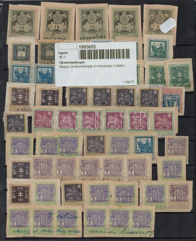 https://www.darabanth.com/en/350-Online-auction/350.0/Hungarian-philately-and-postal-history/Document-Stamps~16/Magyar-okmanybelyegek-A4-berakolap-2-oldalan~II1993652