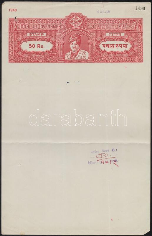 https://www.darabanth.com/en/350-Online-auction/350.0/Hungarian-philately-and-postal-history/Document-Stamps~16/cca-1943-India-Jodhpur-allam-adoiv-50-Rupia-illetekbelyeggel-India-tax-sheet-with-document-s~II1821987