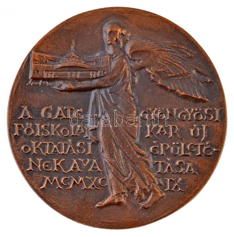 Lantos Györgyi (1953- ) 1999. "A GATE GYÖNGYÖSI FŐISKOLAI KAR ÚJ OKTATÁSI ÉPÜLETÉNEK AVATÁSA MCMXCIX" egyoldalas, öntött Br plakett (93mm) T:1-