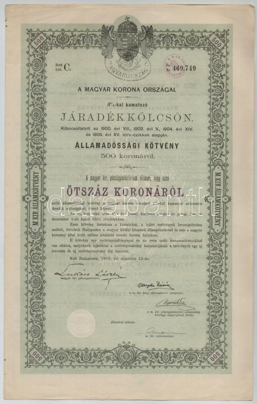 https://www.darabanth.com/en/350-Online-auction/350.0/Numismatics/Shares-and-Tickets~1000005/Budapest-1910-Magyar-Korona-Orszagai-4-al-kamatozo-jaradekkolcson-500K-rol-szelvenyekkel~II1993857
