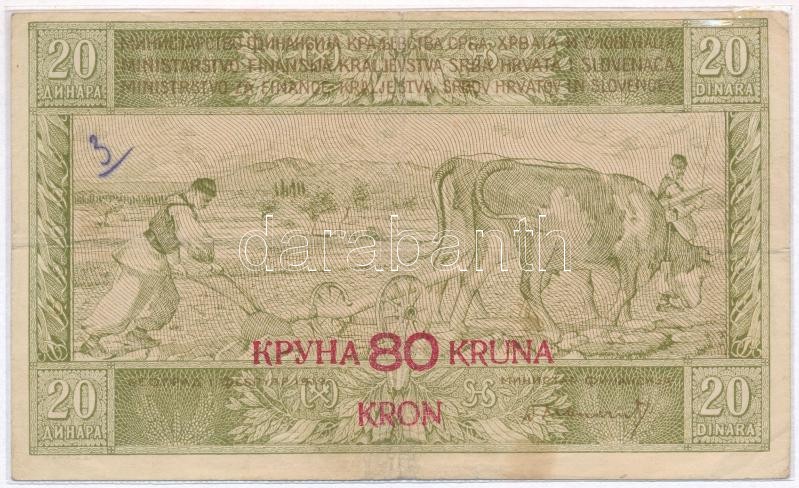 Szerb-Horvát-Szlovén Királyság 1919. 20D "80K" felülbélyegzé... https://www.darabanth.com/en/350-Online-auction/350.0/Numismatics/Worldwide-banknotes~2500073/Szerb-Horvat-Szloven-Kiralysag-1919-20D-80K-felulbelyegzessel-lezart-foliaban-TIII--~II1988566