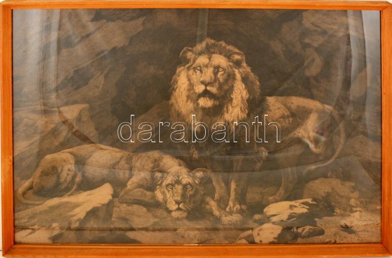 Herbert Thomas Dicksee (1862-1942): Oroszlánok. Rézkarc, papír, jelzet...