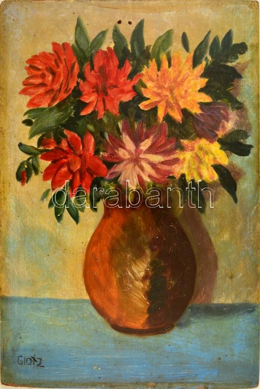 Glatz jelzéssel: Virágcsendélet. Olaj, farost (lyukas), foltos, 45×30 ...