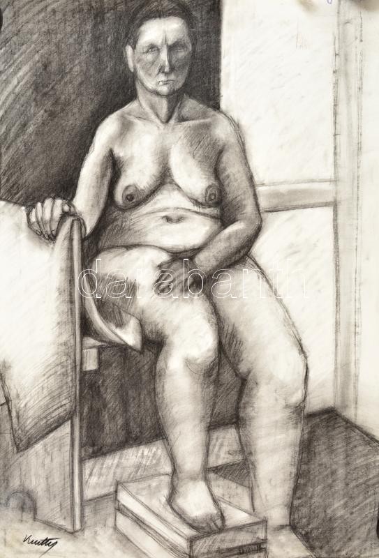 Kmetty jelzéssel: Ülő női akt. Szén, papír, felcsavarva, 61×42 cm