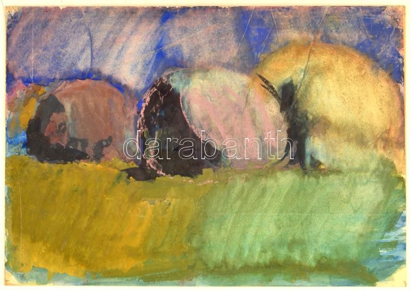 Somlai Vilma (1938-2007):Szénaboglyák, pasztell, papír-farost, jelzett...