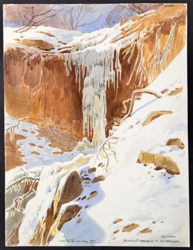 Veress Zoltán (1868-1935): Jégcsapok, Kis Ördögárok 1922. Akvarell, pa...