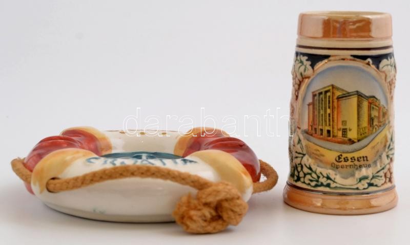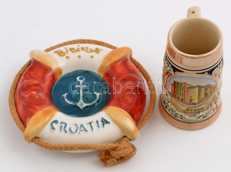 Bibnje és Essen kerámia emléktárgyak, 2 db, sérülésekkel, d: 12 cm, m: 11 cm
