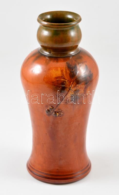 Mázas kerámia váza, jelzés nélkül, kis mázhibákkal, m: 26 cm