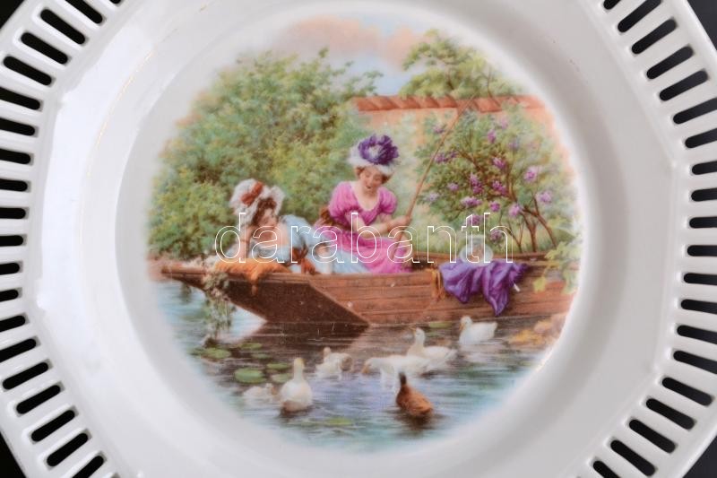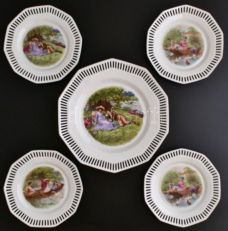 Apró süteményes készlet (4 szem.), jelzés nélkül, matricás, áttört szélű, apró kopásnyomokkal, d: 17 és 25 cm