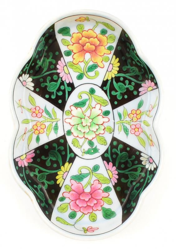 Herendi Gödöllői mintás tálka, kézzel festett, jelzett, apró kopás nyomokkal, 13,5×9 cm