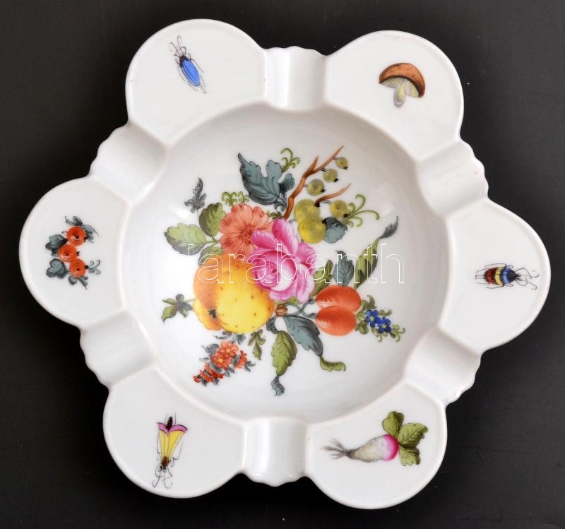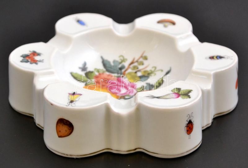 Herendi virág, gomba és rovarmintás hamutartó. Kézzel festett, jelzett...