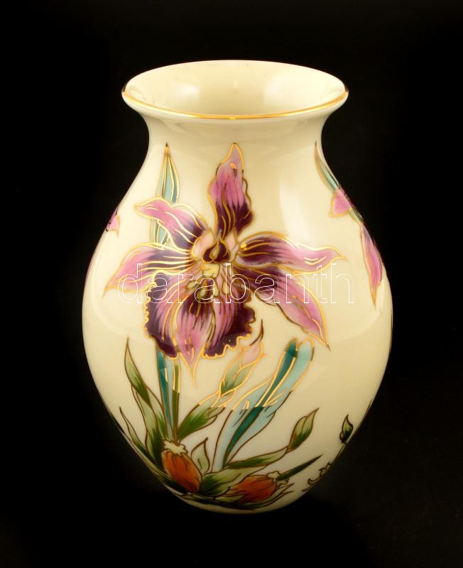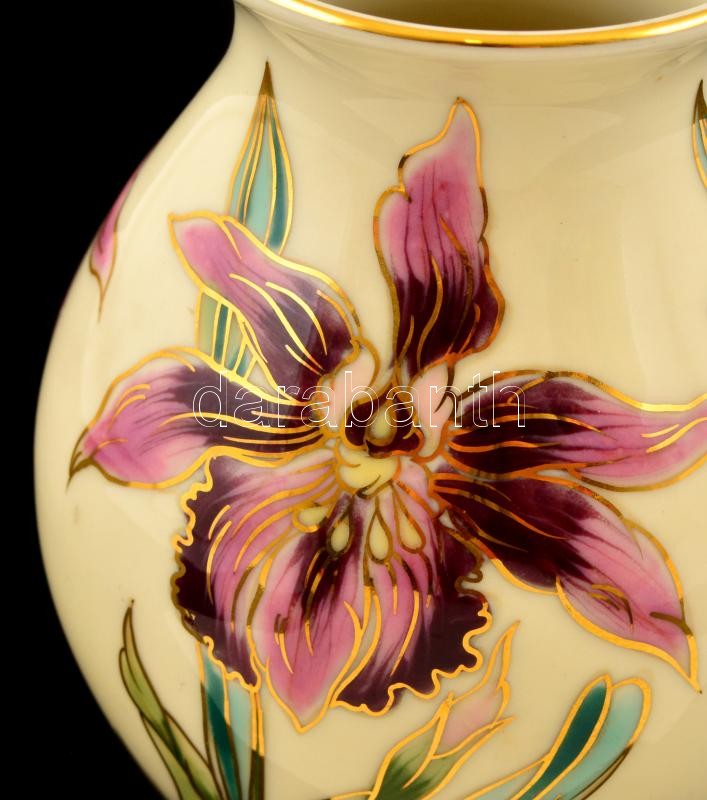 Zsolnay orchidea mintás váza, kézzel festett, jelzett, apró kopásnyomo...