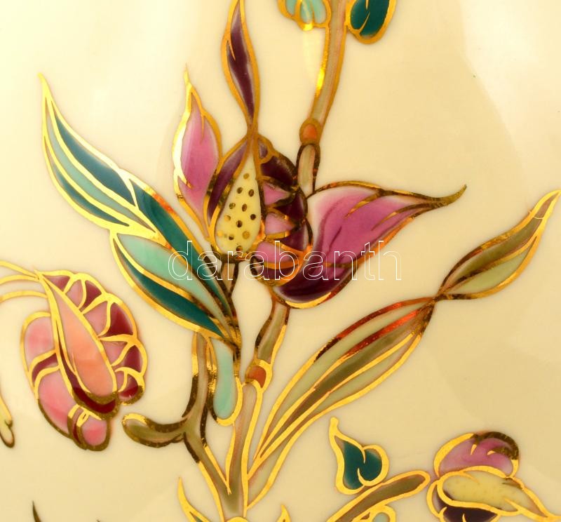 Zsolnay orchidea mintás váza, kézzel festett, jelzett, apró kopásnyomo...