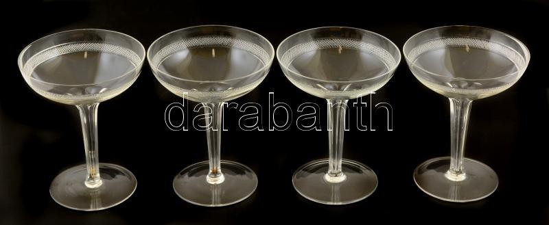 Art deco pezsgőspoharak, 4 db, apró hibákkal, m: 14 cm