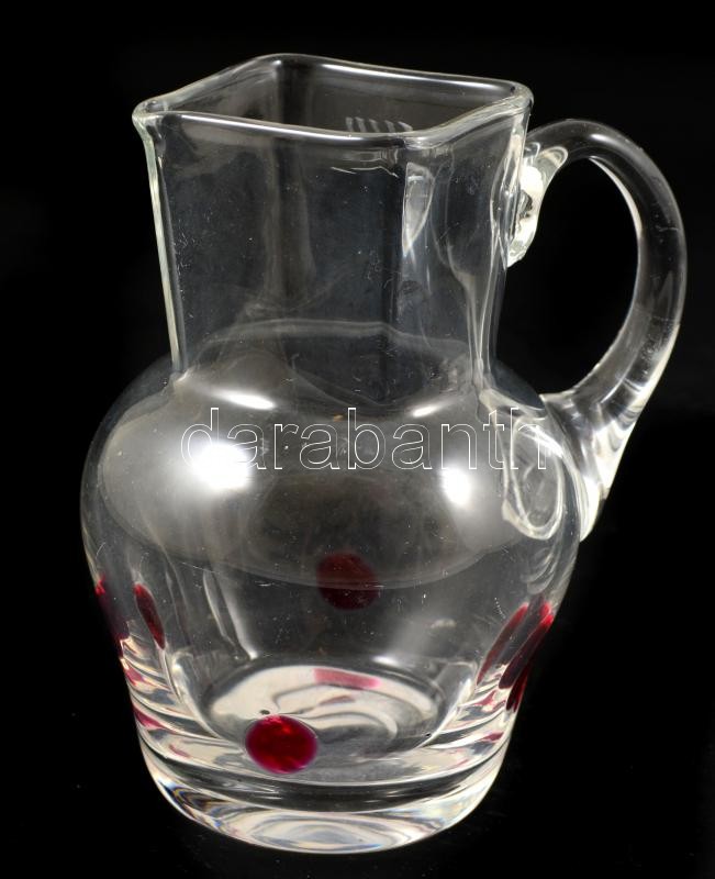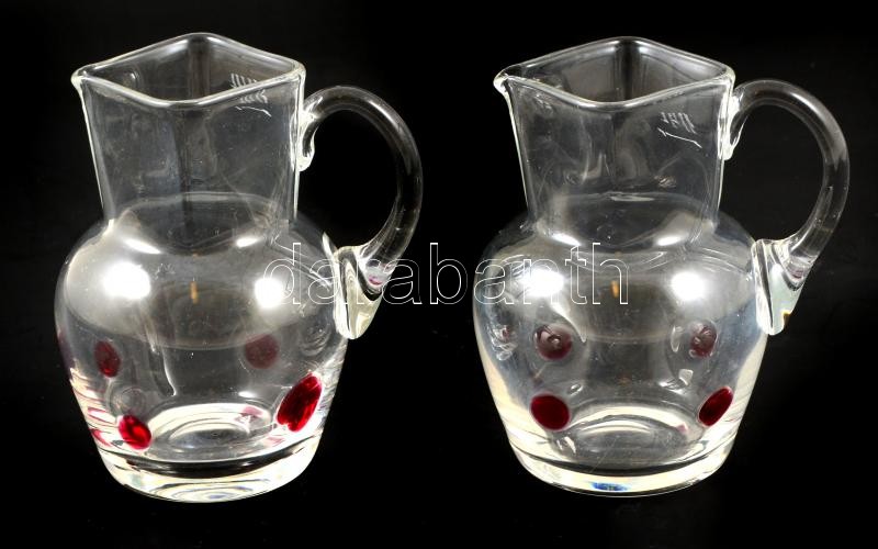Piros pöttyös fújt kiöntő (2 db), jelzett (1142), m:11,5 cm