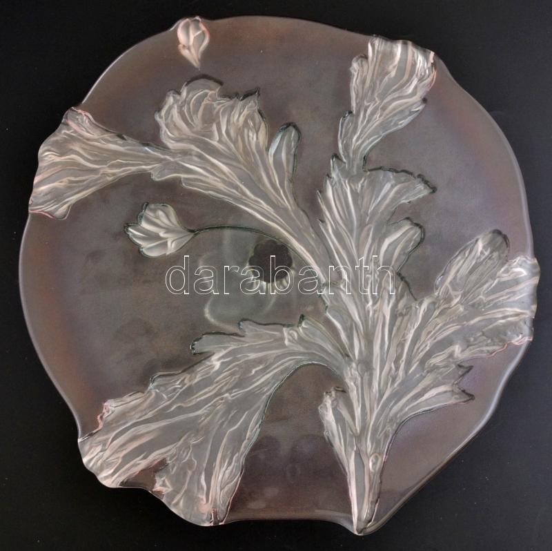 R. Lalique jelzéssel talpas kínálótál, formába préselt, plasztikus lev...