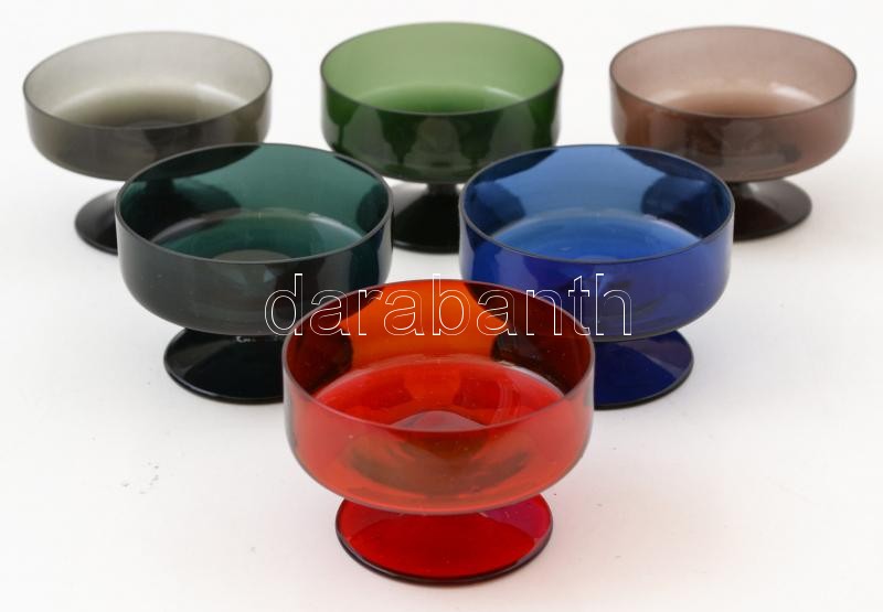 Színes fújt talpas likőrős poharak ( 6 db), hibátlanok, jelzés nélkül,...